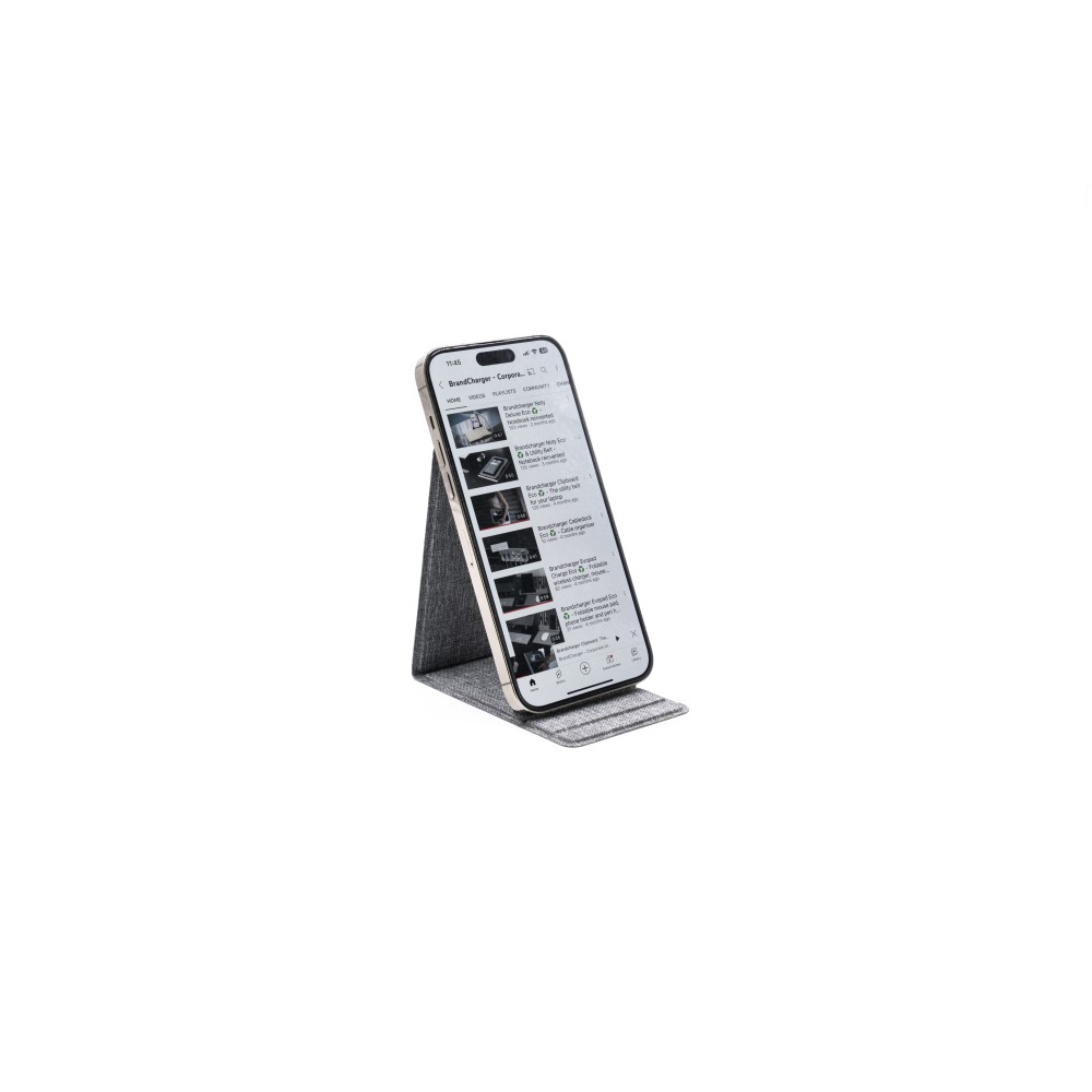 Az Ascend Charge Eco egy RPET-ből készült, fenntartható telefon- és táblagép tartó, amelyet a Recycled Claim Standard (RCS) tanúsít. 15 W-os vezeték nélküli gyorstöltéssel rendelkezik, MagSafe kompatibilis, és szilikon MagSafe matricát is tartalmaz. Állítható szögével és összecsukható kialakításával praktikus, környezetbarát kiegészítő minden munkaterülethez. Szabadalommal védett. Emblémázás: Szitanyomás