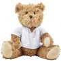 Plüssmackó színes kapucnis pólóban, fehér húzózsinórral. Szeme hímzett. Emblémázás: Szitanyomás