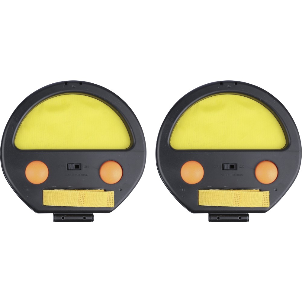 Labdajáték készlet két fogóval és négy labdával. A játék fogórészén zárral és tépőzárral, mely a kézhez való rögzítést segíti. Csomagolása barna papírdoboz. ABS. Emblémázás: Tamponnyomás