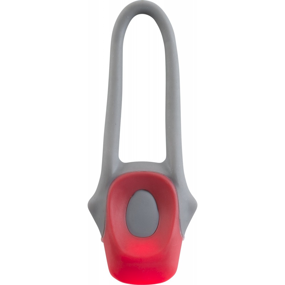 Műanyag kerékpáros lámpa két LED-del, szilikon rögzítőpánttal, kétféle villogó funkcióval és ki/bekapcsoló gombbal. A fehér színű lámpa első világításnak, a piros pedig hátsó világítás céljára alkalmas. Az elemet tartalmazza. Emblémázás: Tamponnyomás