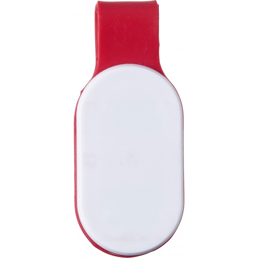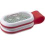 Biztonsági lámpa erős COB (Chip On Board) LED-del, fehér és piros fénnyel. Az erős mágnesek, valamint szilikon pánt rögzíti az első és a hátsó panelt. Az elemet tartalmazza. Emblémázás: Tamponnyomás