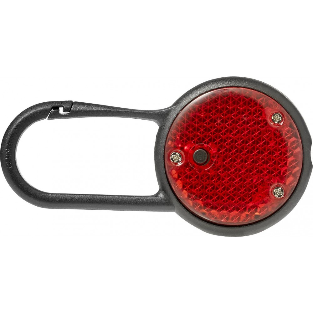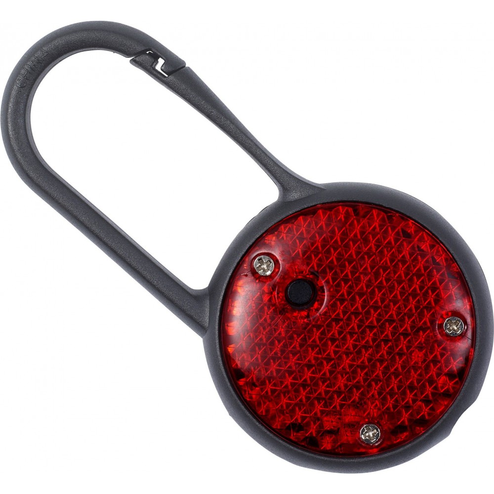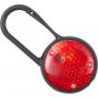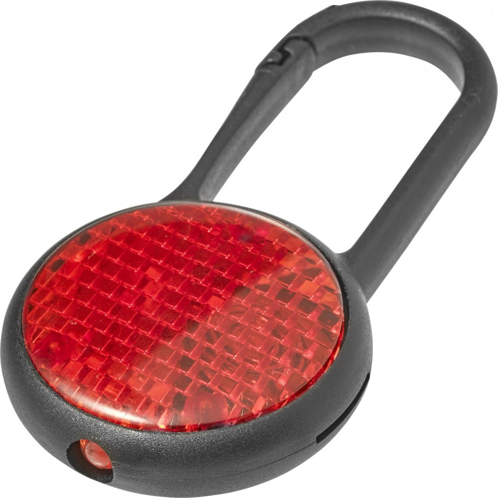 Biztonsági villogófény karabinerrel. Az elemet tartalmazza. PS, PP. Emblémázás: Tamponnyomás, UV nyomtatás
