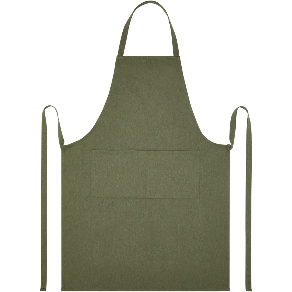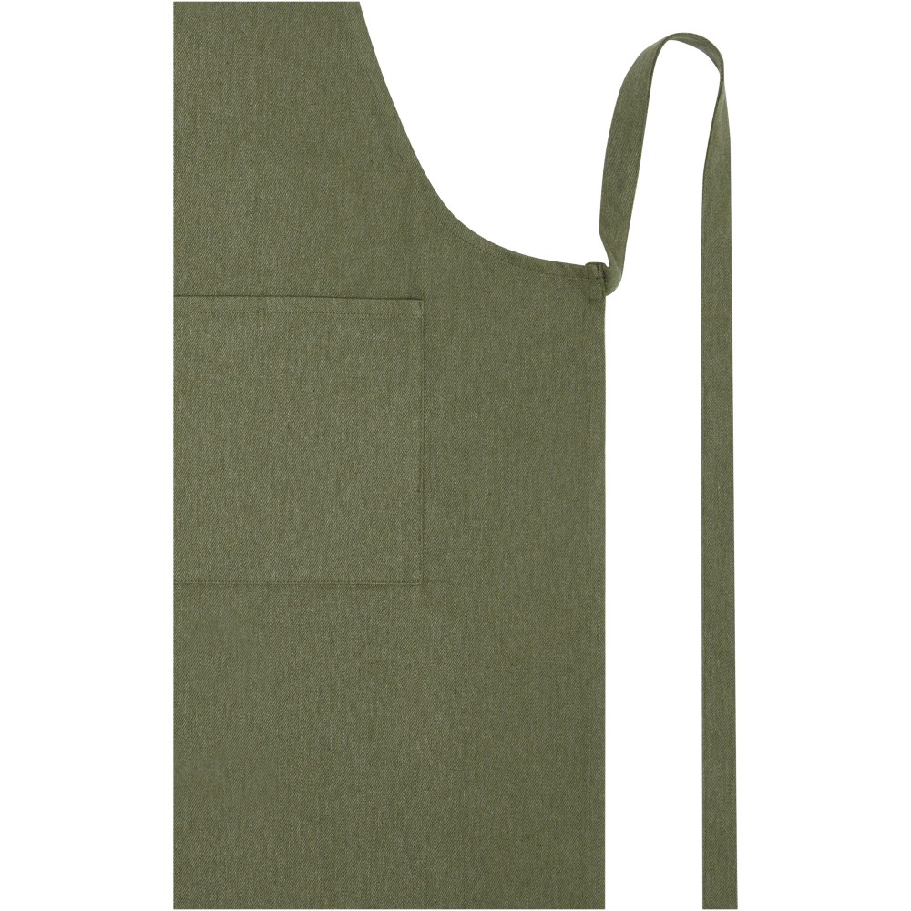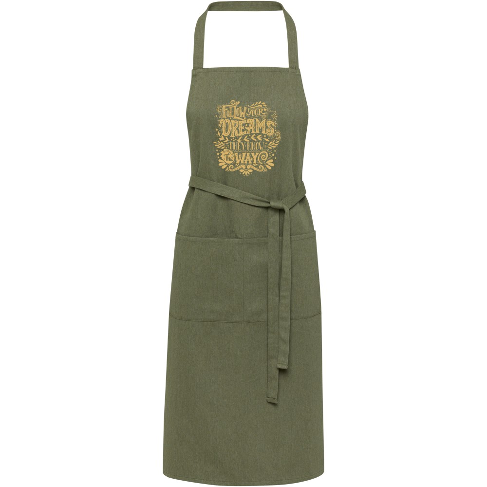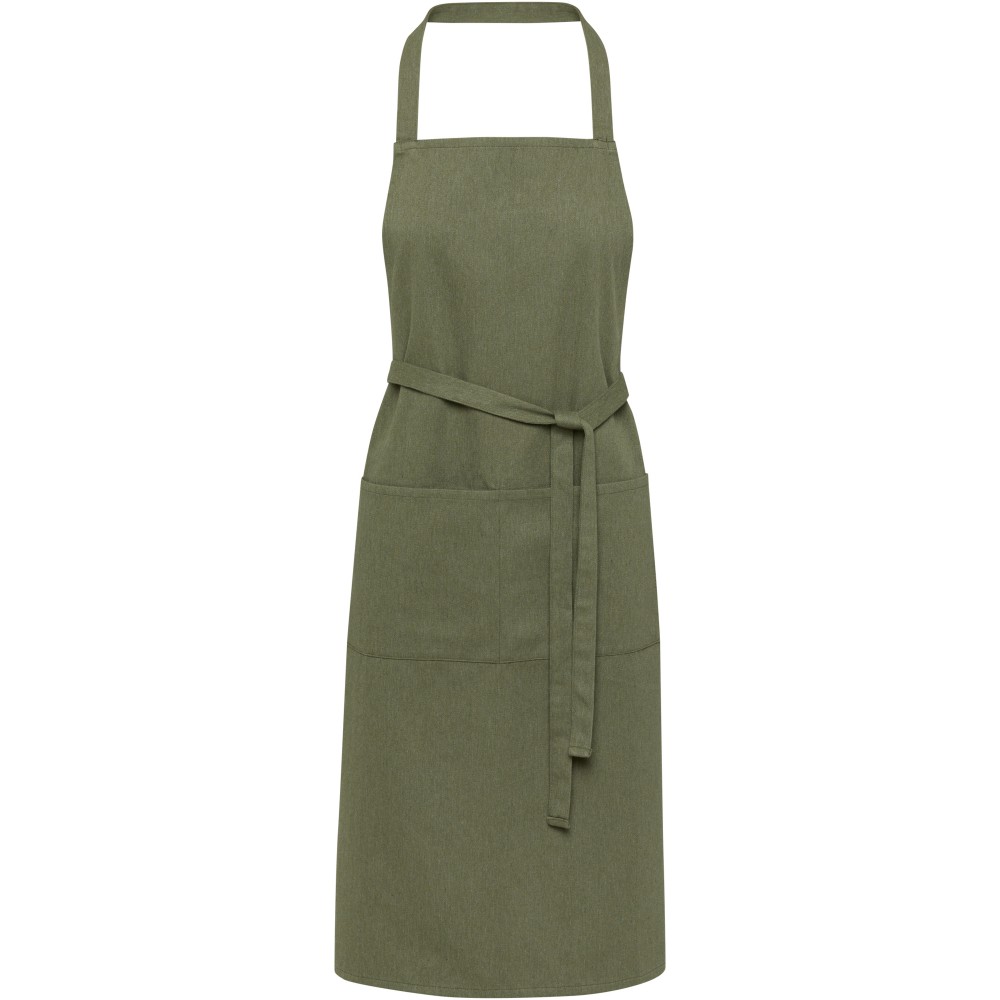 A Shara kötény 70% újrahasznosított pamutból és 30% újrahasznosított poliészterből készült, így vastag, strapabíró és kényelmes viselet. A kötény 2 egymás melletti zsebbel (egyenként 22 x 20 cm) és egy 1 méteres megkötővel rendelkezik. A kötény Cyclo újrahasznosított szálakat tartalmaz, ahol előválogatott hulladékot használnak, amely meghatározza a fonal színét. Minden kötényhez egy Aware nyomjelző is tartozik. Ez az innovatív funkció lehetővé teszi a felhasználók számára, hogy egy QR-kód segítségével nyomon követhessék a termék eredetét és útját, növelve az ellátási lánc átláthatóságát és elősegítve a termék és a gyártási folyamat közötti szorosabb kapcsolatot. Emblémázás: Hímzés, Szitanyomás