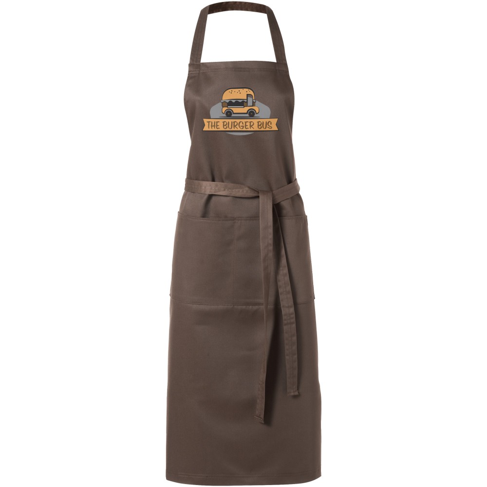 Twill anyagú kötény 2 zsebbel és 1 m megkötővel hátul. Emblémázás: Hímzés, Szitanyomás