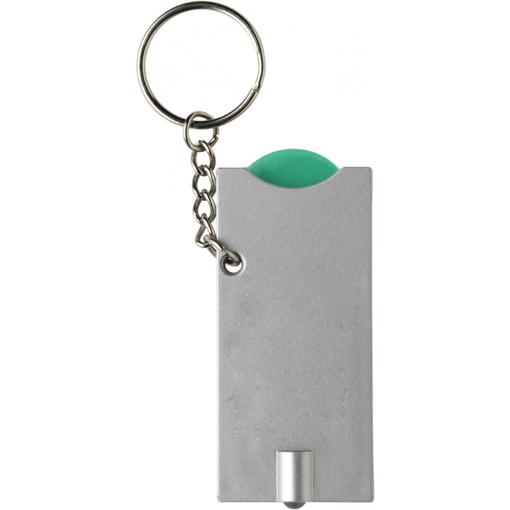 Világítós kulcstartó érmetartóval, ezüst/zöld