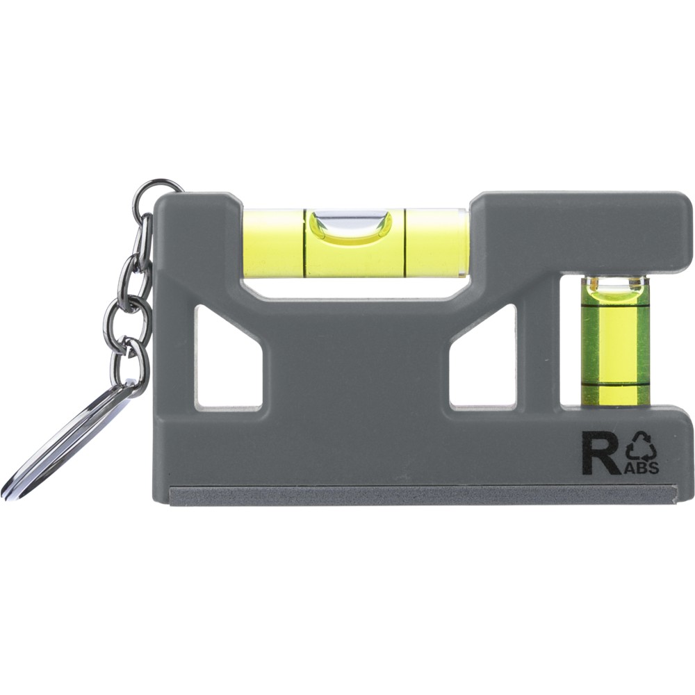 Kulcstartó vízmértékkel, újrahasznosított ABS, szürke