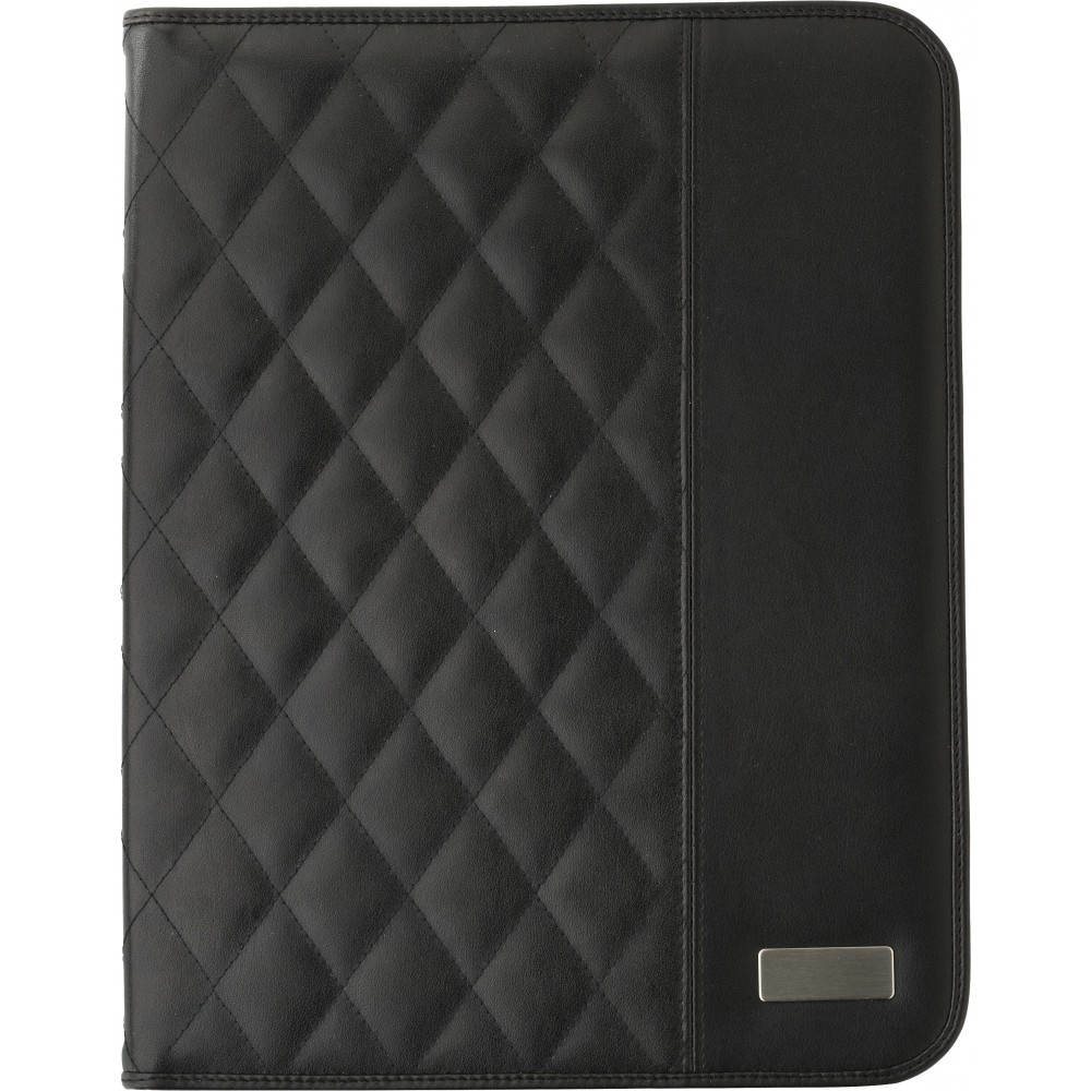 A4-es méretű, PU bélelt mappa többféle belső zsebbel, 25 lapos vonalas jegyzettömbbel és tolltartó füllel (a tollat nem tartalmazza). Emblémázás: Gravírozás, Szitanyomás, Tamponnyomás