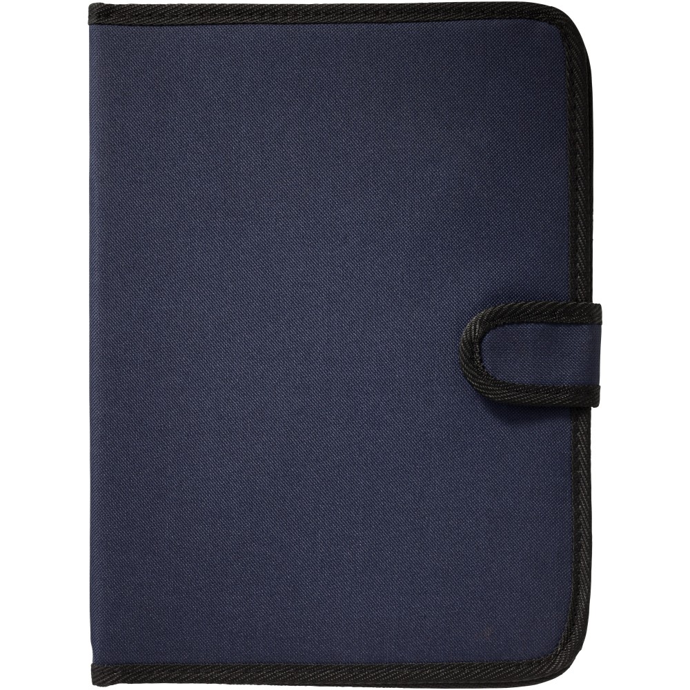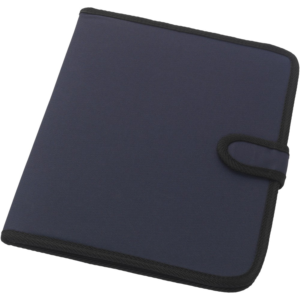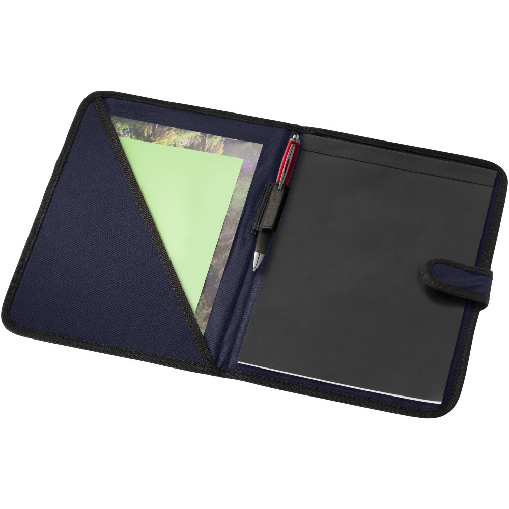 Tépőzáras mappa, tolltartó hurok, irattartó zseb és 20 oldal vonalas jegyzetlap. A tollat és a kiegészítőket nem tartalmazza. 600D poliészter. Emblémázás: Szitanyomás