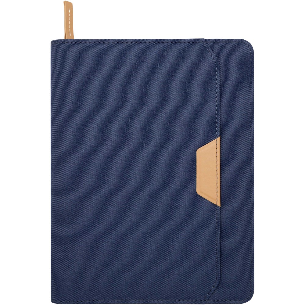 A Nomumi A5 portfólió lekerekített sarkú, újrahasznosított műanyagból készült, praktikus irodai alapdarab. 64 db krém színű, 80 g/m2 vonalas lapot tartalmaz, cipzáros záródással, tollhurokkal és egy zsebbel rendelkezik. Emblémázás: Szitanyomás