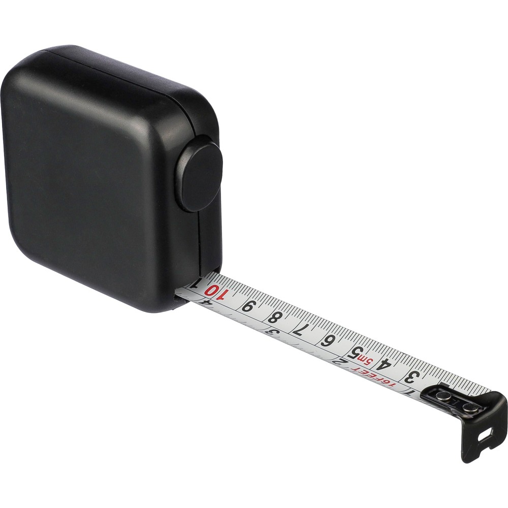 Mérőszalag. 5 méteres, 19 mm széles fém szalaggal, amelyen centiméter- és inch-beosztás található. MID tanúsítvánnyal rendelkezik. Ultrahangos technológiával összeszerelt (csavarmentes). Nyomógombbal és zárral. Egyenként barna kartondobozba csomagolva. Anyaga: ABS. Emblémázás: Tamponnyomás