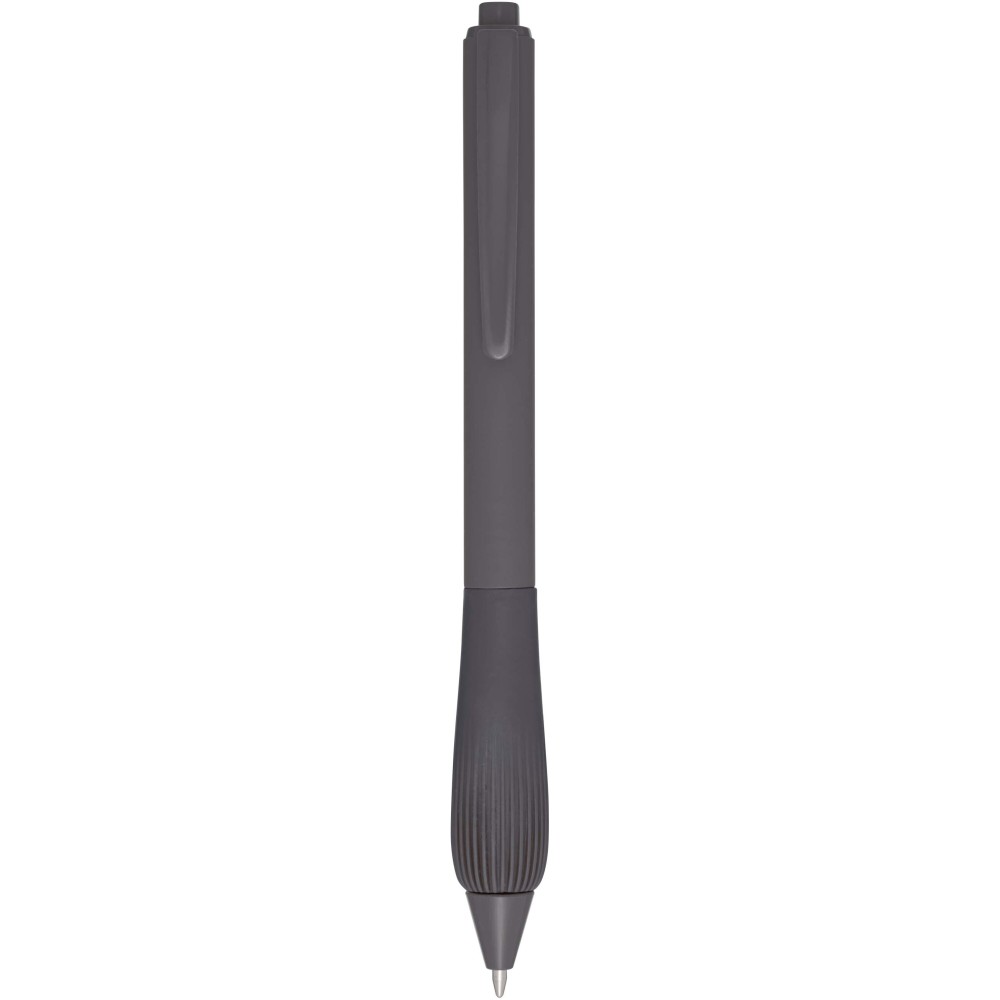 Újrahasznosított műanyag golyóstoll gumírozott tolltesttel és TPR anyagból készült fogórésszel. Fekete tollbetéttel. Írási hossz: 1000 méter. Hegyméret: 1,0 mm. Emblémázás: Tamponnyomás