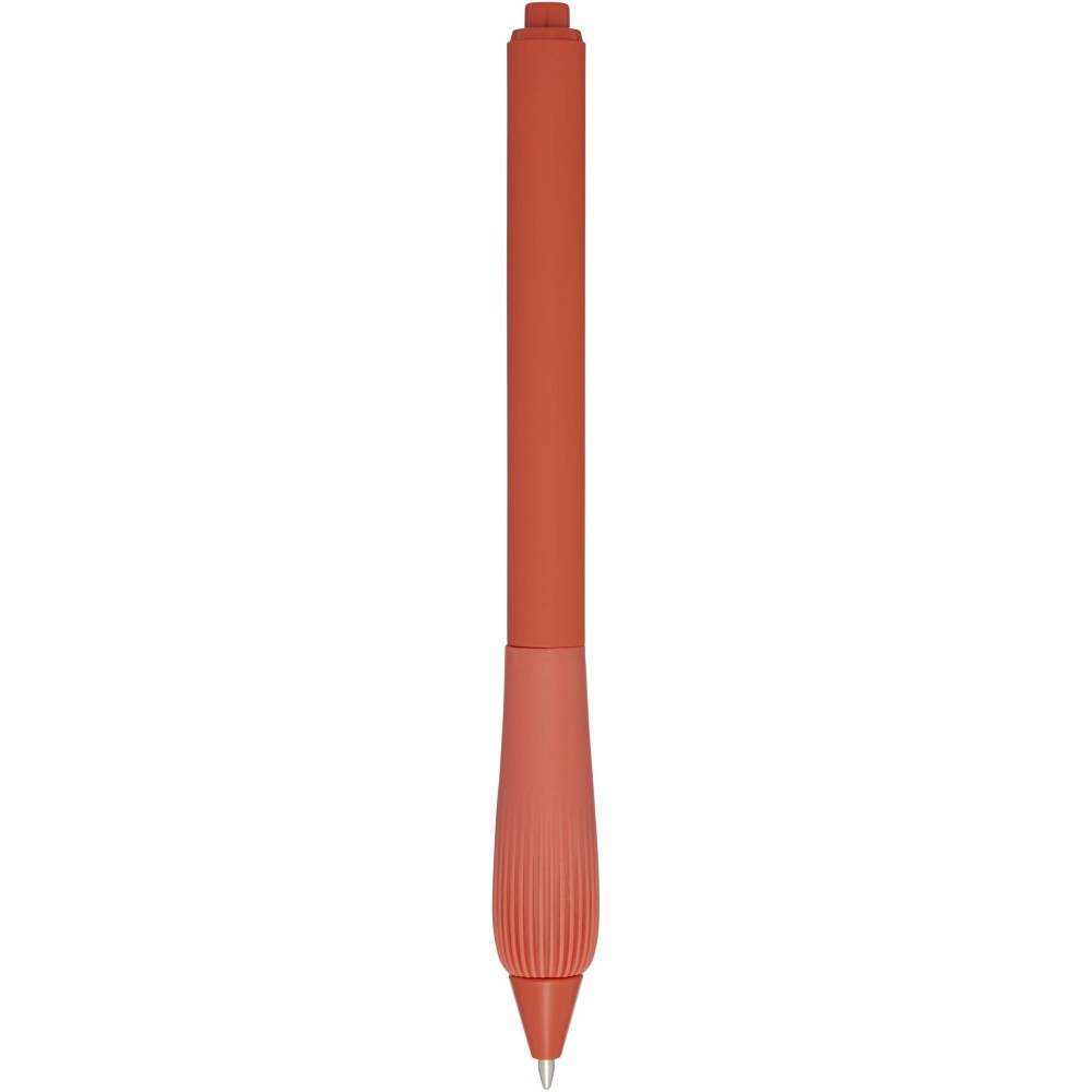 Újrahasznosított műanyag golyóstoll gumírozott tolltesttel és TPR anyagból készült fogórésszel. Kék tollbetéttel. Írási hossz: 1000 méter. Hegyméret: 1,0 mm. Emblémázás: Tamponnyomás