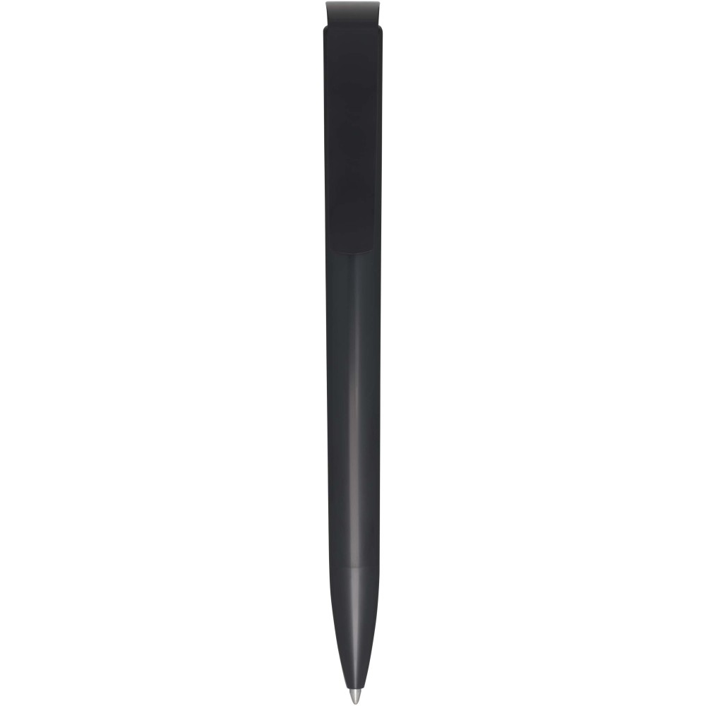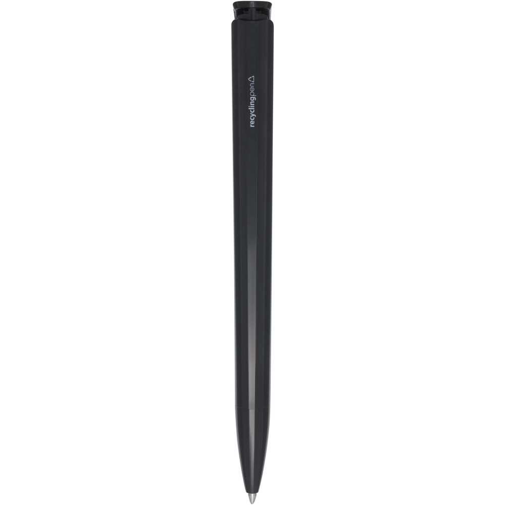 Golyóstoll, amelynek teste és klipsze újrahasznosított műanyagból készült, a hegy pedig rozsdamentes acélból. Kék tollbetéttel. Íráshossz: 3000 méter. Hegyméret: 1,00 mm. Németországban készült. Emblémázás: Tamponnyomás