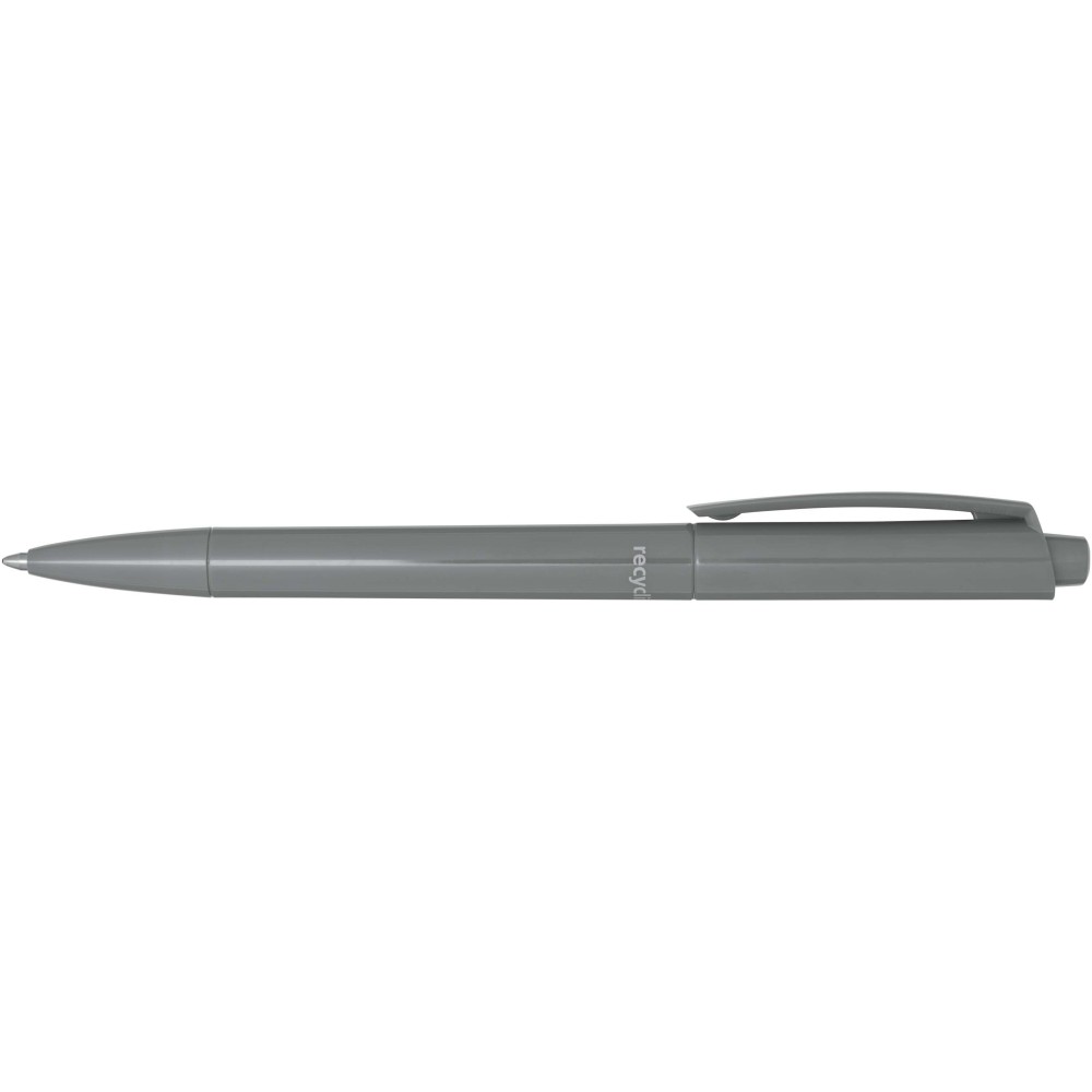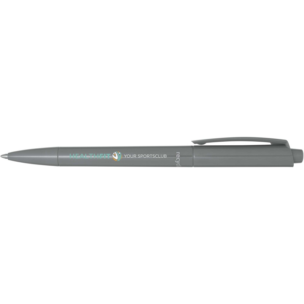 Golyóstoll, amelynek teste és klipsze újrahasznosított műanyagból, hegye pedig rozsdamentes acélból készült. Fekete tollbetéttel. Íráshossz: 3000 méter. Hegyméret: 1,00 mm. Németországban készült. Emblémázás: Tamponnyomás, UV nyomtatás