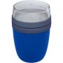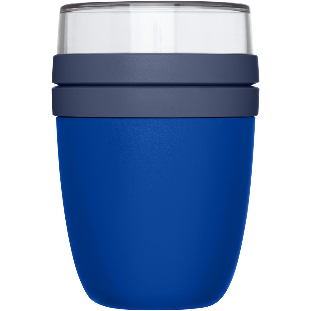 Ételtartó edény két rekesszel. Mindkét tartálynak külön fedele van. A felső, átlátszó rész űrtartalma 200 ml. Az alsó edény 500 ml-es. Fagyasztóba, mikrohullámú sütőbe (fedél nélkül), és mosogatógépbe tehető. A felső, átlátszó rész nem tehető mikrohullámú sütőbe. Szivárgásmentes. BPA mentes. PP műanyag, PCTG műanyag. Emblémázás: Tamponnyomás
