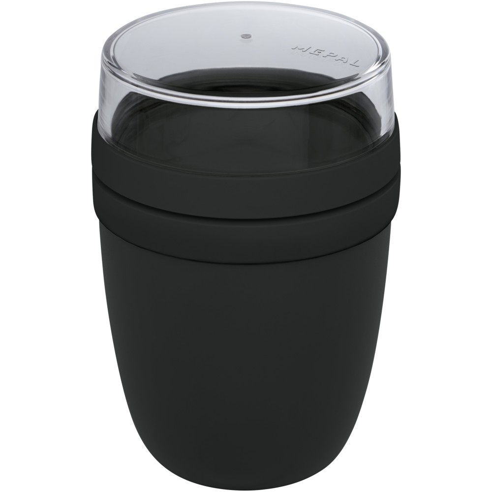 Ételtartó edény két rekesszel. Mindkét tartálynak külön fedele van. A felső, átlátszó rész űrtartalma 200 ml. Az alsó edény 500 ml-es. Fagyasztóba, mikrohullámú sütőbe (fedél nélkül), és mosogatógépbe tehető. A felső, átlátszó rész nem tehető mikrohullámú sütőbe. Szivárgásmentes. BPA mentes. PP műanyag, PCTG műanyag. Emblémázás: Tamponnyomás