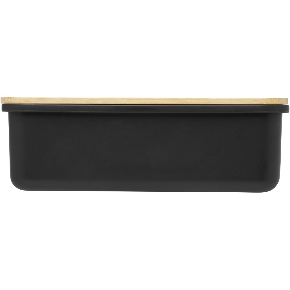 A Mangi ételtartó doboz újrahasznosított műanyagból készült. Bambusz fedéllel és rugalmas pánttal van ellátva, amely biztosítja, hogy a fedél a helyén maradjon, így az étel frissen tartása garantált. Űrtartalom: 750 ml. Emblémázás: Gravírozás, Tamponnyomás