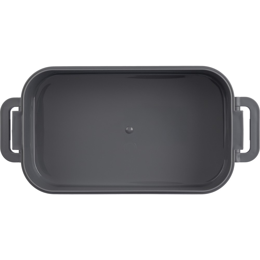 1600 ml-es PP ételtároló doboz 2 db, egyenként 800 ml-es résszel. Szilikon szeleppel a mikrohullámú sütőben történő melegítéshez, csatos záródással és szilikon hordozófüllel. Mosogatógépben tisztítható. Emblémázás: Tamponnyomás