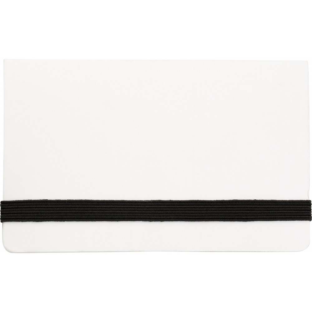 Jegyzettömbkészlet. Karton tartó összefogó pánttal, mely 150 öntapadó jegyzetlapot, valamint névjegyek tárolására alkalmas zsebet tartalmaz. Emblémázás: Szitanyomás, Tamponnyomás