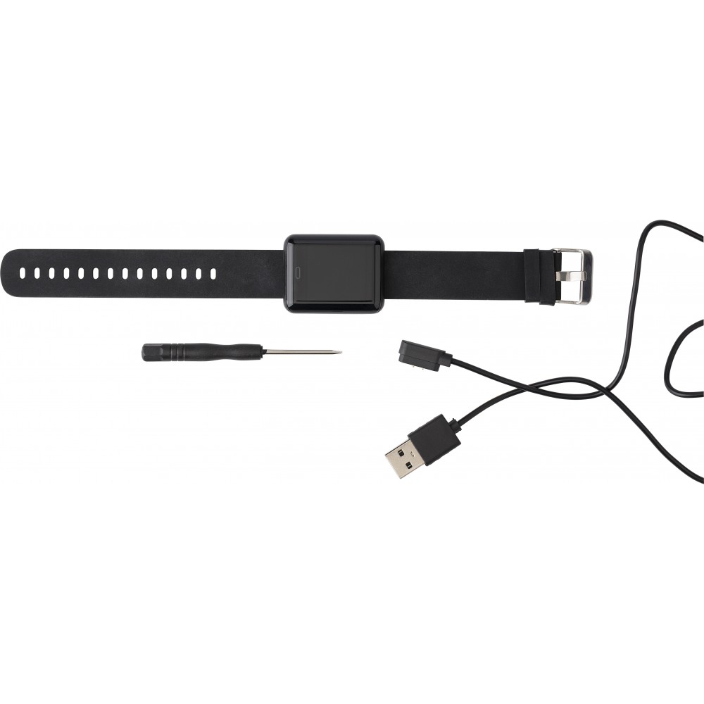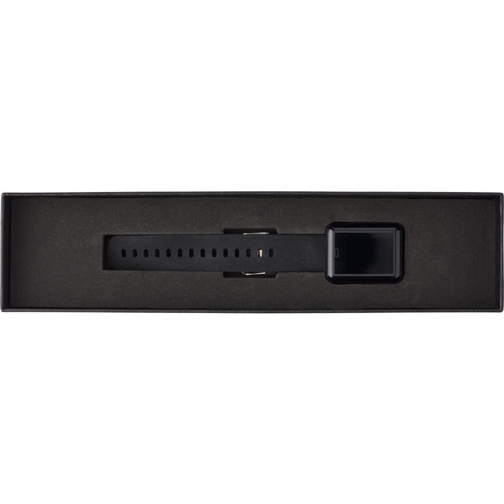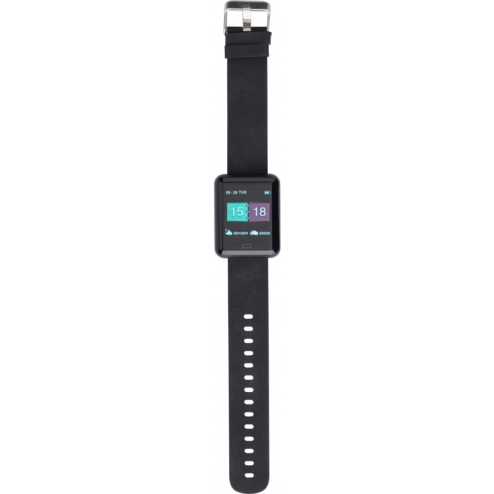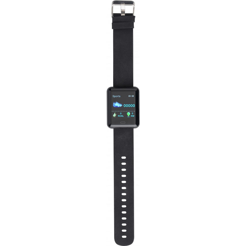 Okosóra szilikon kartpánttal. Lépés-, távolság-, kalória-, szívritmusszámlálóval, valamint alváskövetővel. Szelfifunkció, hívásfogadás, applikációértesítés, vezeték nélküli technológia. IP67 vízálló, 1.3 -es kijelző. 180 mAh-es akkumulátor. Emblémázás: Tamponnyomás