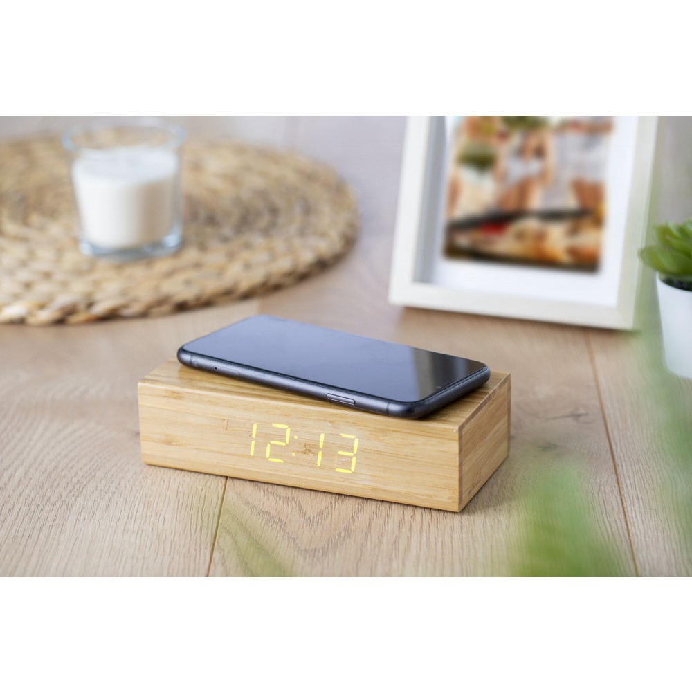 Bambusz vezeték nélküli töltő és óra, natúr (431964-823): 1 db