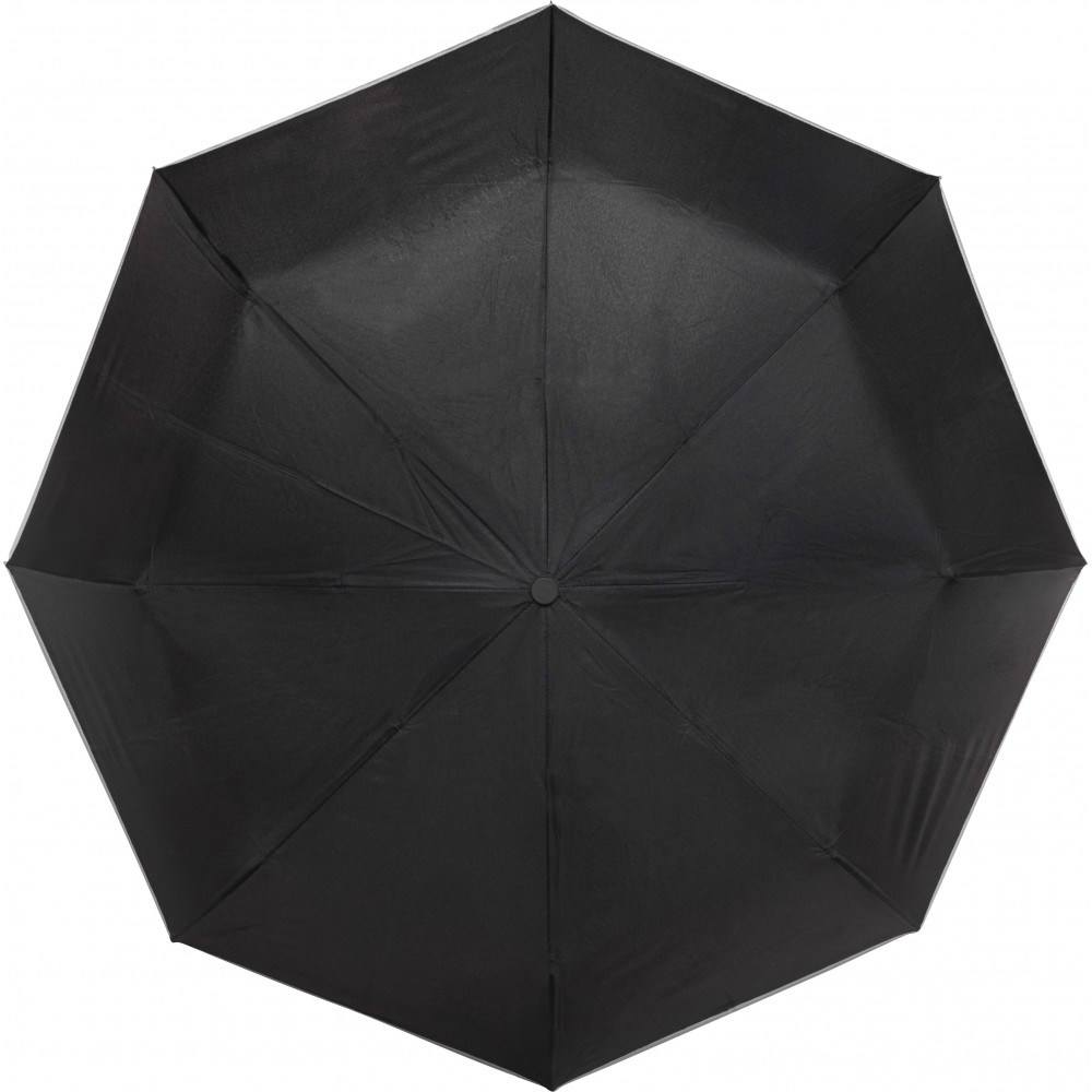 Összecsukható automata esernyő. Szélálló kialakítás, fém váz, tépőzáras összefogó pánt és tok. Nyitása és záródása is automatikus. Emblémázás: Szitanyomás