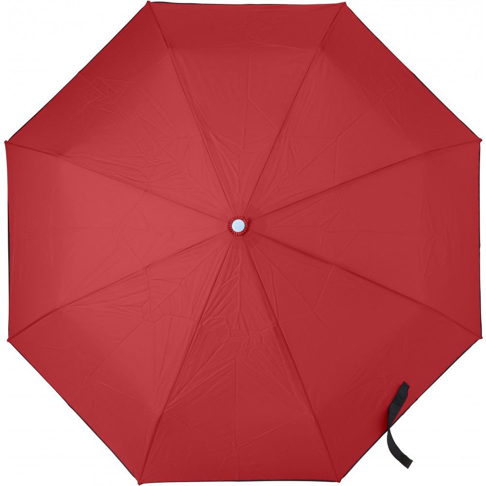 Összecsukható automata esernyő fém vázzal, üvegszálas bordákkal, műanyag fogóval, tokkal. Emblémázás: Szitanyomás