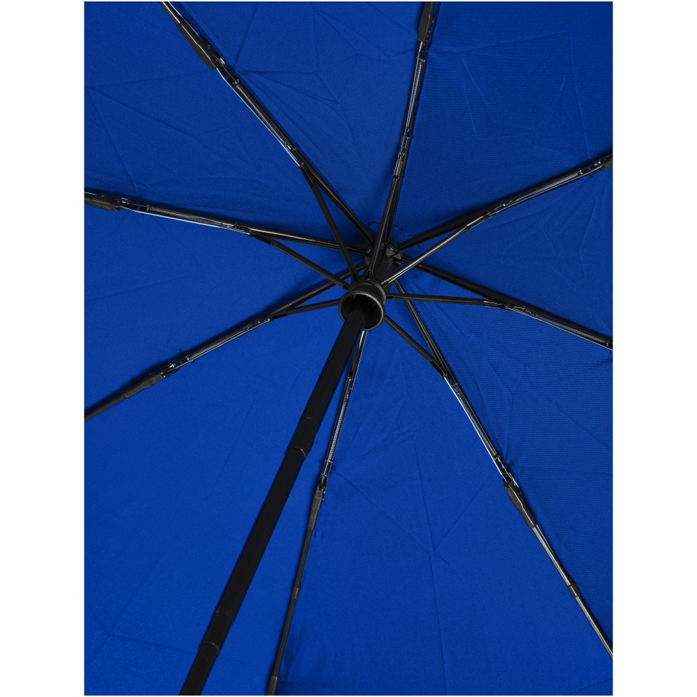 Összecsukható 21 -es esernyő. Erős fém váz, üvegszálas szerkezet. Fa nyele és az újrahasznosított RPET alapanyag miatt jó választás azok számára, akiknek fontos a fenntartható szemlélet. Emblémázás: Szitanyomás