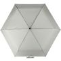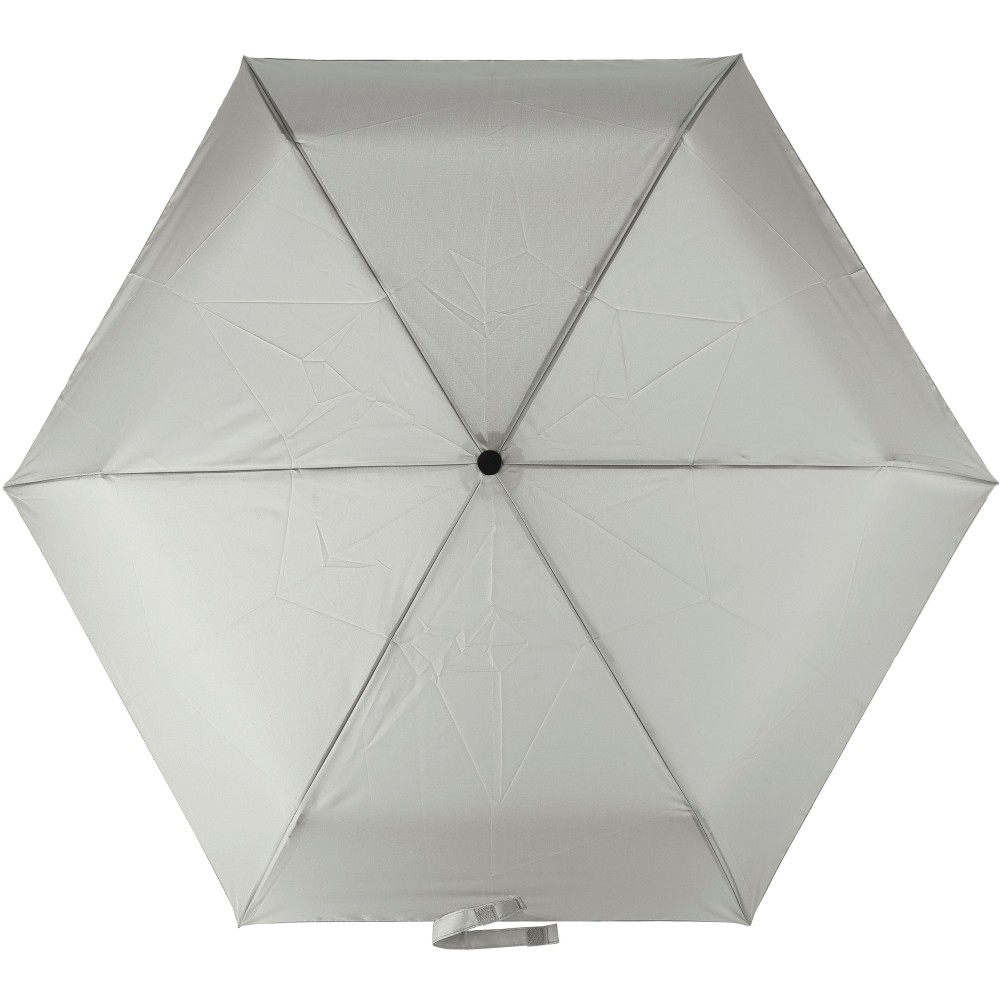 Összecsukható, automata esernyő (21 inch), hat panellel és acél vázzal. Az esernyő tépőzáras záródásán RPET címke található, műanyag karabineres fogantyúval, tokkal. Szélálló. Anyaga: RPET 190T. Emblémázás: Szitanyomás