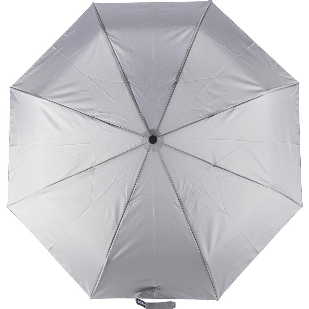 Automata nyitású és zárású, összecsukható esernyő 8 panellel, tokkal. Nyele gumis mintázatú, az autók abroncsára emlékeztet. Vászna RPET pongee anyag. Mérete: 21". Emblémázás: Szitanyomás