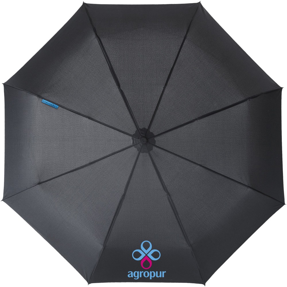 Exkluzív kivitelű 3 részes automata esernyő. Fekete fém nyél, üvegszálas bordák és gumival borított műanyag markolat. Az ernyőhöz illő tasakkal. Összecsukva mindössze 31 cm hosszú. Emblémázás: Szitanyomás