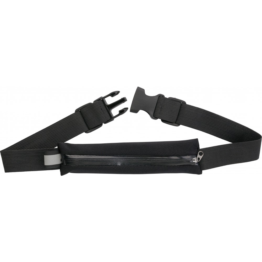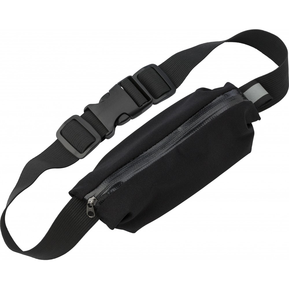 Cipzáros övtáska mindkét oldalon állítható pánttal (2 x 27 cm), műanyag csattal. A táska belső felülete víztaszító bevonattal lett ellátva. Neoprén. Emblémázás: Szitanyomás
