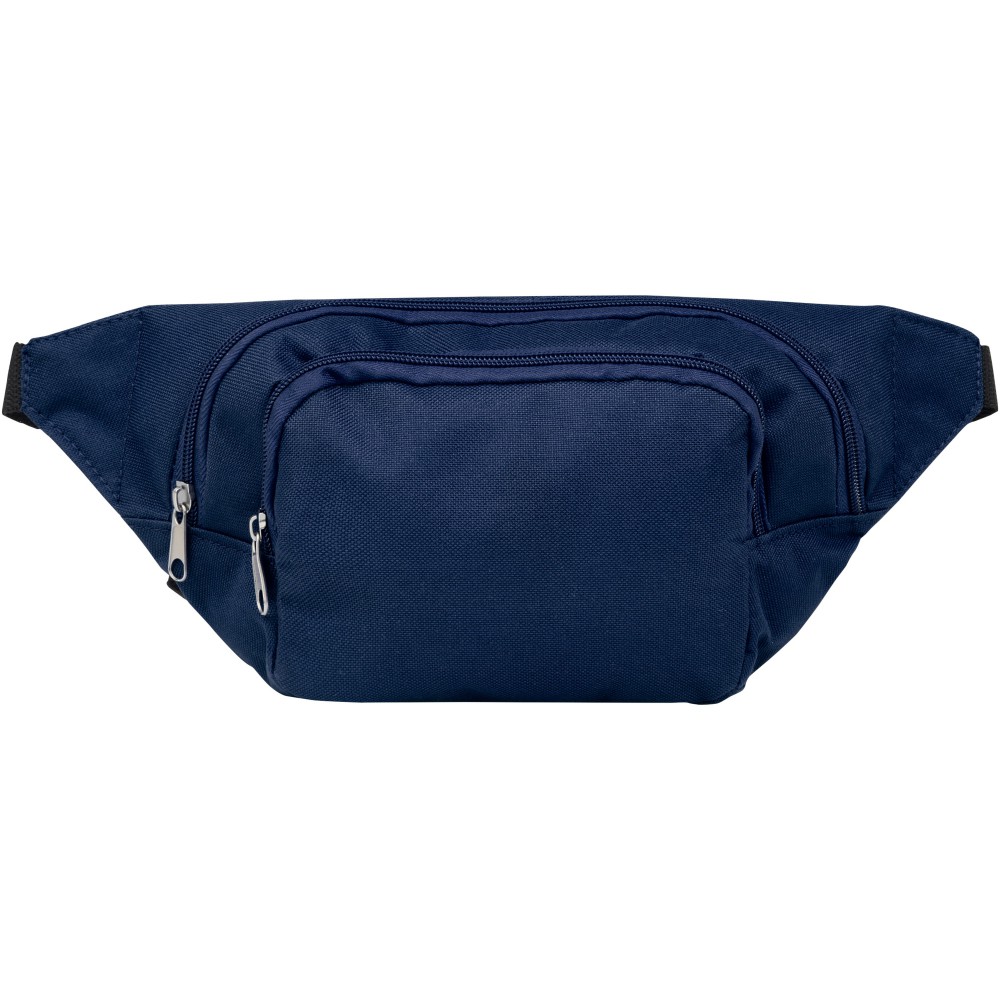 Két nagy cipzáros rekesz. Állítható övpánt, amely gyorsan kicsatolható. 600D poliészter. Emblémázás: Szitanyomás