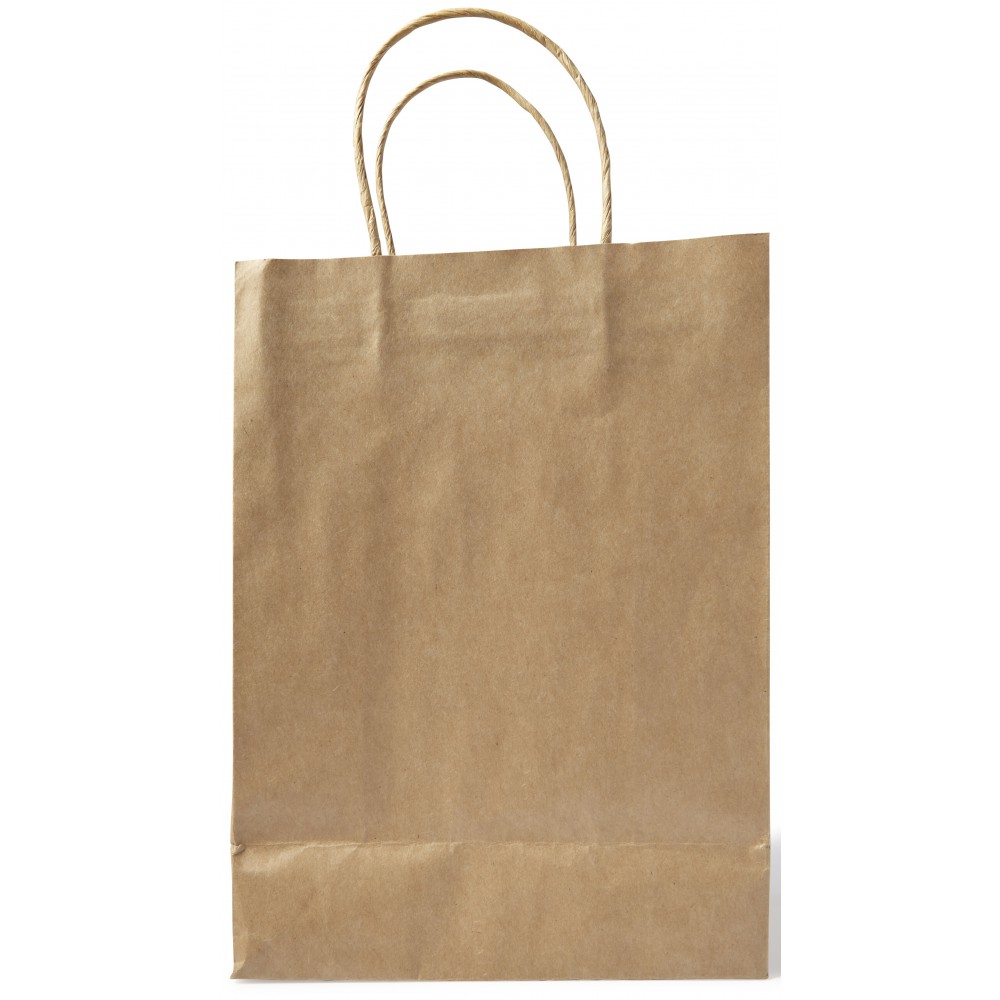 Natúr sodrottfüles papírtáska, 130 g/m2. Közepes. Emblémázás: Szitanyomás