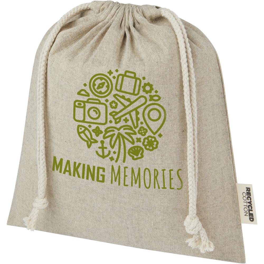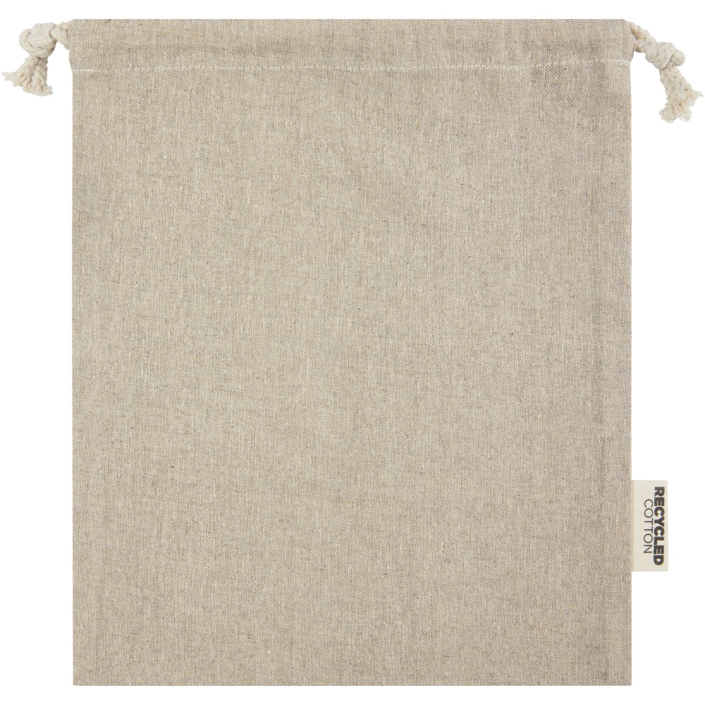 Ajándéktáska GRS tanúsítvánnyal rendelkező újrahasznosított pamutból, pamut húzózsinórral. Ideális ajándékok átadására, tárolására. Mérete: 25 x 30 cm. Emblémázás: Szitanyomás