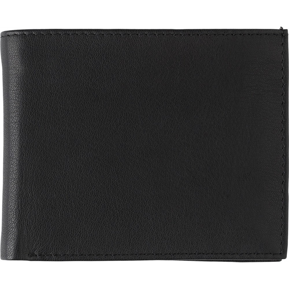 Hasított bőr kártyatartó RFID védelemmel az adatlopás ellen, érmetartóval, pattintós nyitással és több zsebbel a papírpénz és kártyák számára. Emblémázás: Tamponnyomás