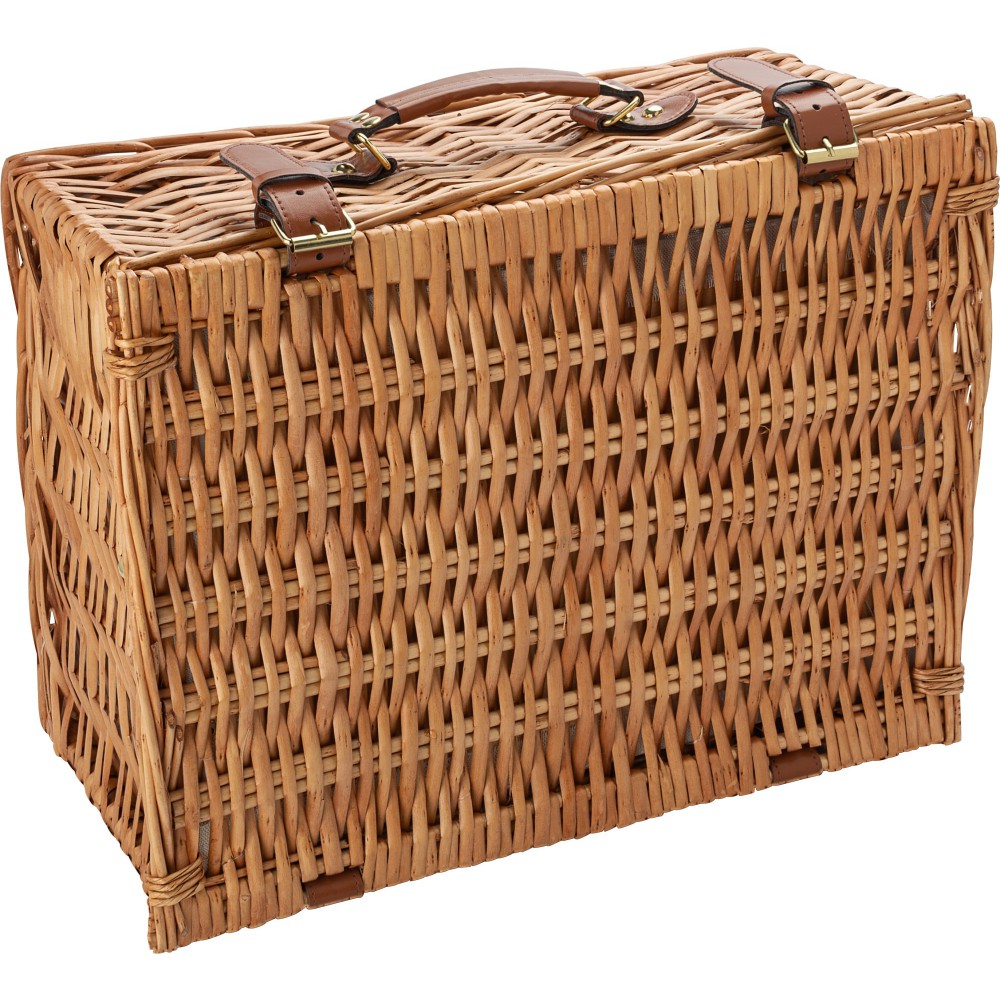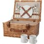 Piknikkosár két fő részére. Rozsdamentes acél evőszközök műanyag nyéllel, 2 darab kerámia tányér és 2 darab 0,21 literes kerámia bögre. A termék természetes anyagokból készült, ezért méreteiben eltérések adódhatnak. Emblémázás: Bögredekor, Tamponnyomás