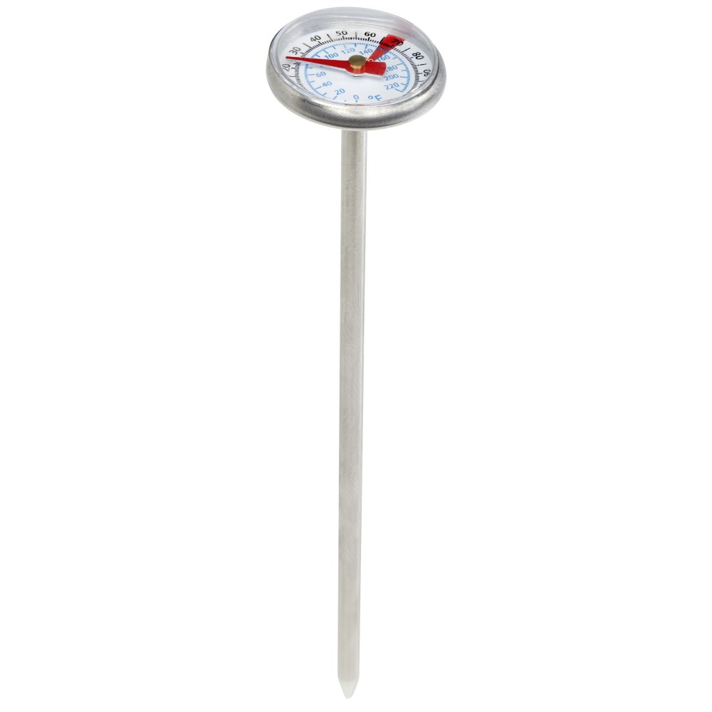 BBQ hőmérő Celsius és Fahrenheit mérési tartományokkal. A mechanikai indukció közvetlenül és pontosan mérhető a serpenyőben sütéskor vagy a grill hőmérsékletének szabályozásához. A tartós, rozsdamentes acél burkolat szilárdságot és korrózióállóságot biztosít. Könnyen használható és könnyen tisztítható. Emblémázás: Matricázás