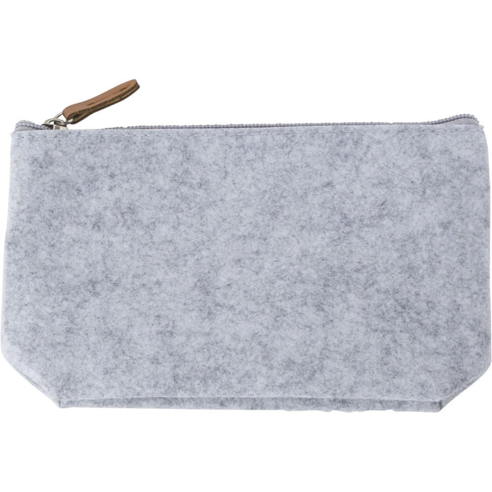 RPET filcből készült piperetáska PU részletekkel. Emblémázás: Hímzés, Szitanyomás