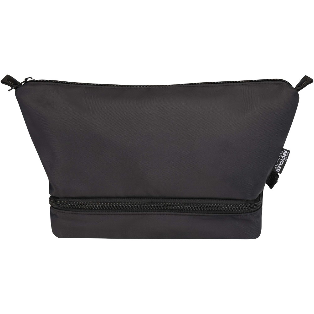 A Trip Aware® újrahasznosított utazó piperetáska kompakt, merev kialakítású, utazás közben a személyes tárgyak rendezett tárolására tervezve. Tartós 290D twill poliészterből készült, kötött hátoldallal és RPET 210D/PU béléssel, átlátható elrendezéssel és praktikus rekeszekkel. Fő rekesze belső cipzáras zsebet tartalmaz a kisebb tárgyak számára, míg kagylószerűen nyíló alsó rekesze elkülöníti az alapvető holmikat a könnyebb hozzáférés és a jobb rendszerezettség érdekében. Minden táska Aware® nyomkövetővel érkezik, amely QR-kód segítségével lehetővé teszi a termék eredetének és útjának nyomonkövetését, növelve az ellátási lánc átláthatóságát és a kapcsolatot a termék gyártási folyamatával. Űrtartalom: 6 liter. Emblémázás: Szitanyomás