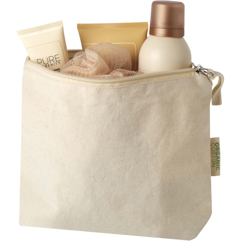 OCS tanúsítvánnyal rendelkező, 100% organikus pamutból készült Odisha neszesszer környezetbarát és fenntartható megoldás. Egy cipzáras rekesszel rendelkezik, amely alkalmas kozmetikai és tisztálkodási szerek tárolására az utazások során. Űrtartalma: 1 liter. 180 g/m2 anyag.