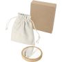Kerek tükör bambuszból a természetes és elegáns megjelenésért. Pamut tasakban szállítjuk. Emblémázás: Gravírozás, Tamponnyomás