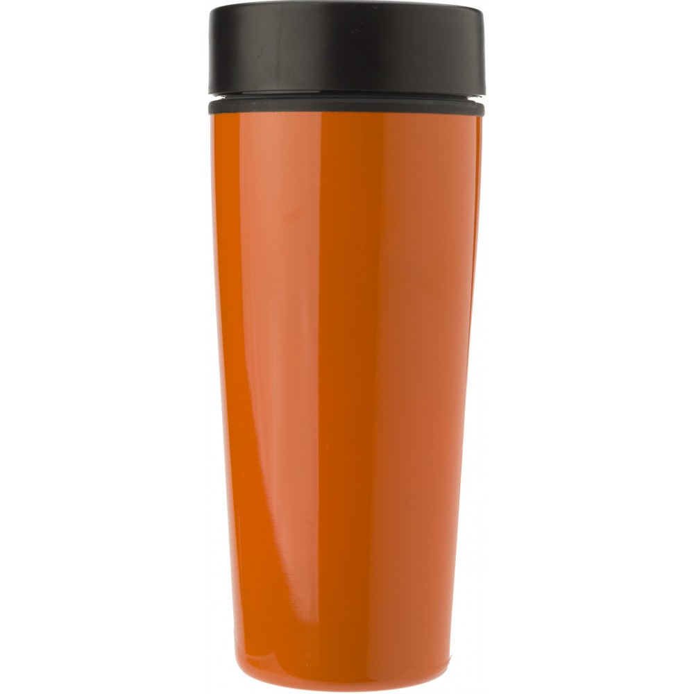 Rozsdamentes acél duplafalú bögre műanyag betéttel, fehér ajándékdobozban. Nem szivárgásmentes. Mosogatógépben nem tisztítható. 450 ml. Emblémázás: Gravírozás, Körszita, Tamponnyomás