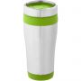 Duplafalú bögre rácsavarható tetővel és elcsúsztatható nyílással. A rozsdamentes acél és a műanyag kombinációja rendkívül erőssé, korrózióállóvá és könnyen tisztíthatóvá teszi a poharat. Nem szivárgásmentes. Szénsavas italokkal is használható. Mosogatógépben nem mosható és mikrohullámú sütőben történő melegítésre nem alkalmas. Űrtartalom: 470 ml. Emblémázás: Gravírozás, Tamponnyomás
