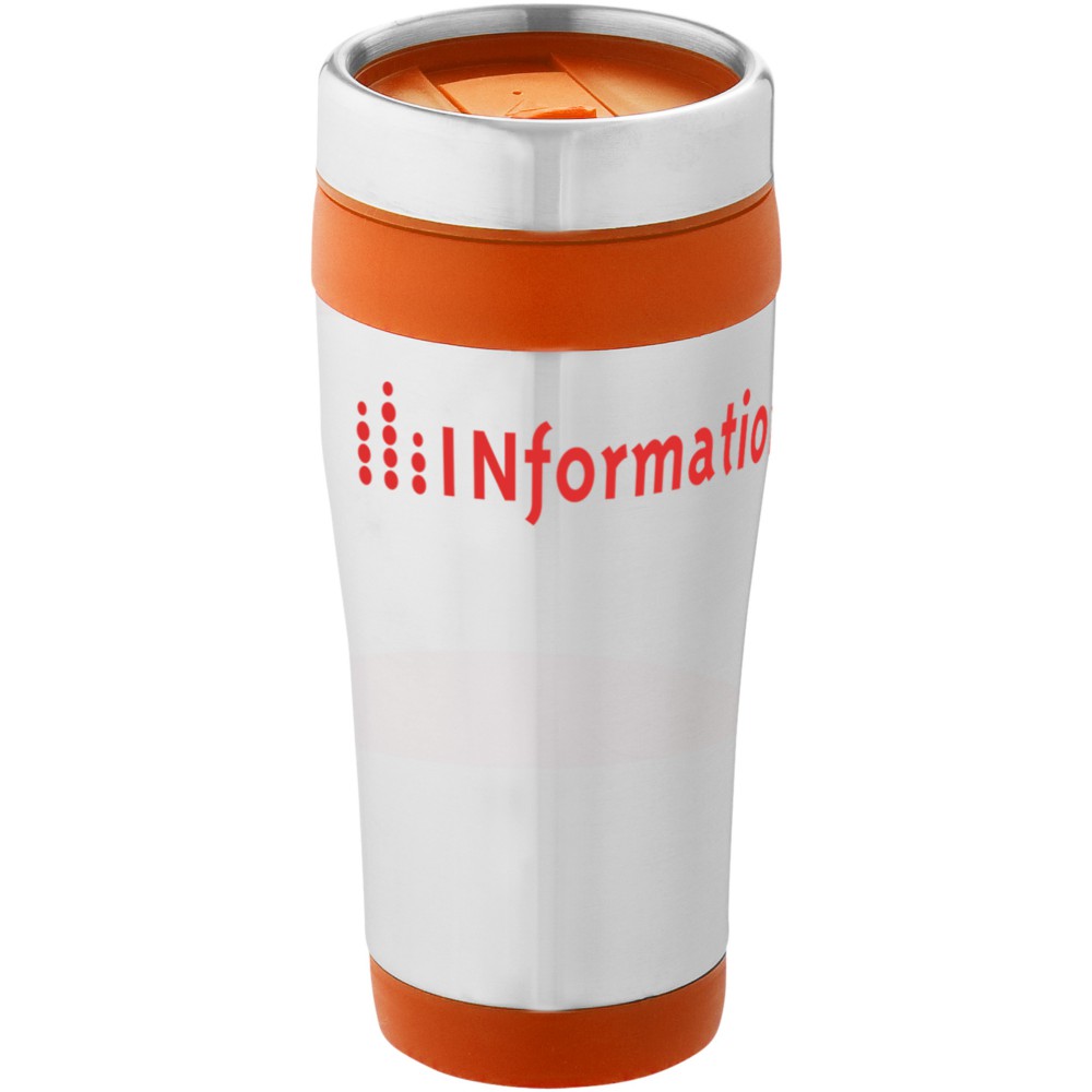 Duplafalú bögre rácsavarható tetővel és elcsúsztatható nyílással. A rozsdamentes acél és a műanyag kombinációja rendkívül erőssé, korrózióállóvá és könnyen tisztíthatóvá teszi a poharat. Nem szivárgásmentes. Szénsavas italokkal is használható. Mosogatógépben nem mosható és mikrohullámú sütőben történő melegítésre nem alkalmas. Űrtartalom: 470 ml. Emblémázás: Gravírozás, Tamponnyomás