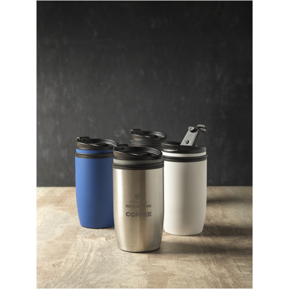 Utazás során jó partner ez a stramm vákuumos pohár. Rozsdamentes acél, duplafalas kialakítás. Melegtartó képesség 8 óra, hidegtartás 24 óra. A duplafalas konstrukciónak köszönhetően nincs külső páralecsapódás. Nem szivárgásmentes. Szénsavas italokkal nem használható. Mosogatógépben nem mosható és mikrohullámú sütőben történő melegítésre nem alkalmas. Űrtartalom: 380 ml. Csomagolás: Avenue doboz. Emblémázás: Gravírozás, Tamponnyomás, UV nyomtatás