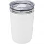 Újrahasznosított műanyag tokkal védett üvegpohár. A pohár 100%-ban tartós boroszilikát üvegből készült, amely megőrzi az ital frissességét, és nem tartalmaz semmilyen káros vegyszert. BPA-mentes, a német élelmiszerbiztonsági törvény (LFGB) szerint tesztelt és jóváhagyott. Ftaláttartalomra tesztelve és jóváhagyva a REACH előírásai szerint. A pohár a legtöbb kávéfőző alá illeszkedik. Nem szivárgásmentes. Szénsavas italokkal nem használható. Mosogatógépben mosható, de mikrohullámú sütőben történő melegítésre nem alkalmas. Űrtartalom: 420 ml. Újrahasznosított karton díszdobozban. Emblémázás: Bögredekor, Tamponnyomás