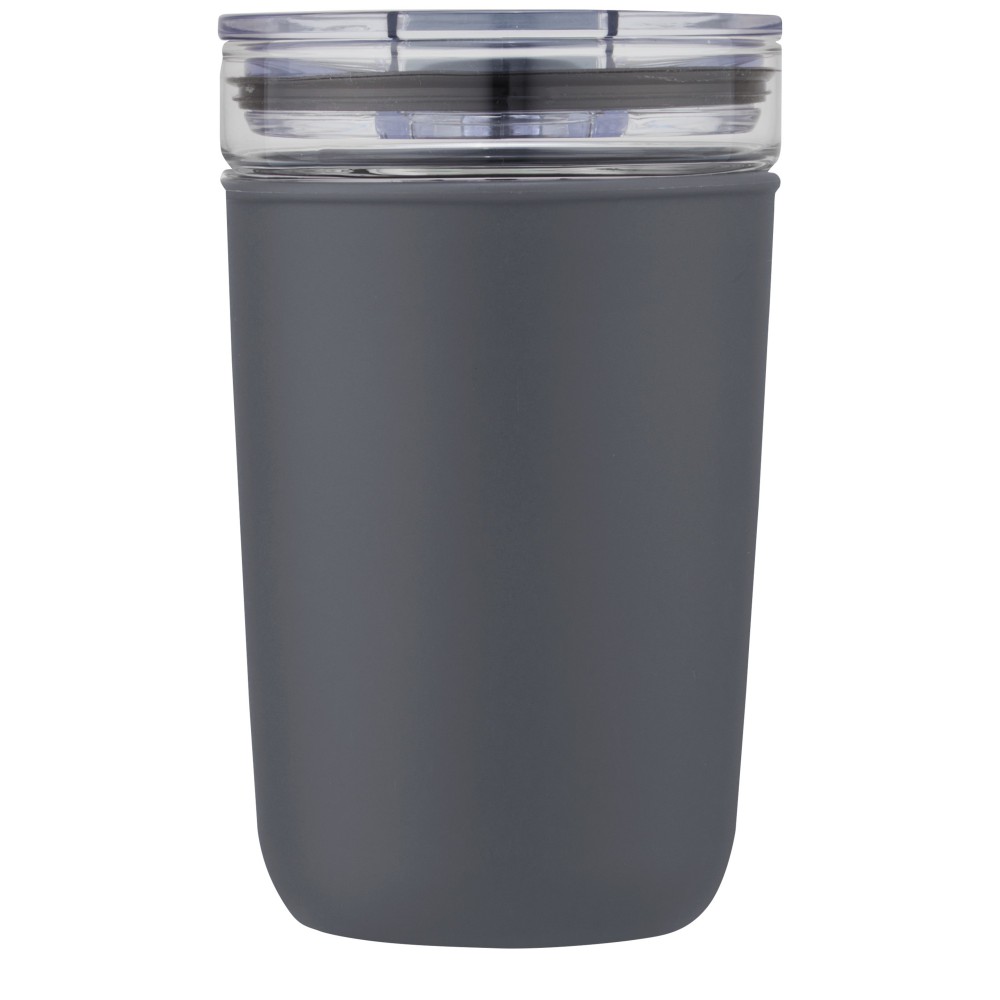 Újrahasznosított műanyag tokkal védett üvegpohár. A pohár 100%-ban tartós boroszilikát üvegből készült, amely megőrzi az ital frissességét, és nem tartalmaz semmilyen káros vegyszert. BPA-mentes, a német élelmiszerbiztonsági törvény (LFGB) szerint tesztelt és jóváhagyott. Ftaláttartalomra tesztelve és jóváhagyva a REACH előírásai szerint. A pohár a legtöbb kávéfőző alá illeszkedik. Nem szivárgásmentes. Szénsavas italokkal nem használható. Mosogatógépben mosható, de mikrohullámú sütőben történő melegítésre nem alkalmas. Űrtartalom: 420 ml. Újrahasznosított karton díszdobozban. Emblémázás: Bögredekor, Tamponnyomás