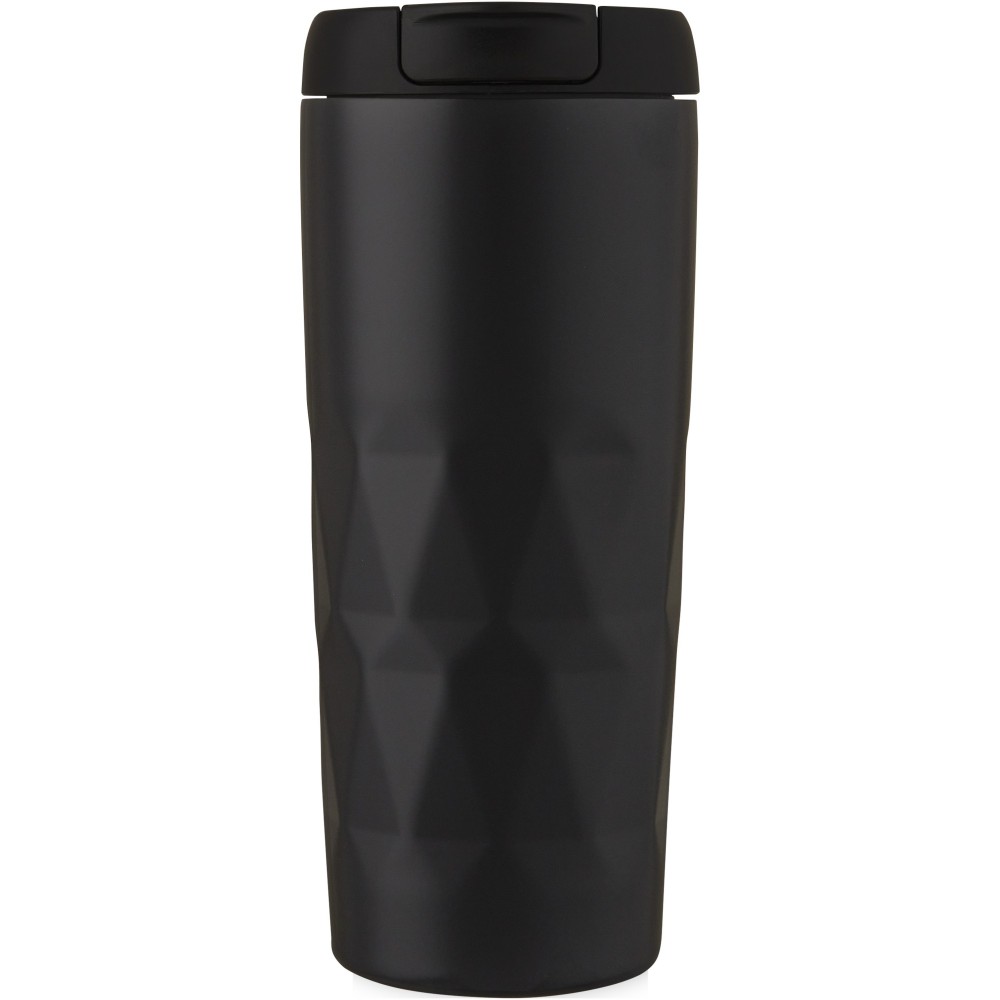 Duplafalú réz vákuumszigetelt pohár csavaros szivárgásmentes fedéllel, kifinomult geometriai kialakítással. A szigetelt 18/8-as rozsdamentes acél több órán keresztül melegen vagy hidegen tartja az italokat. BPA-mentes, a német élelmiszerbiztonsági törvény (LFGB) szerint tesztelt és jóváhagyott, és a REACH előírásai szerint ftaláttartalomra tesztelve. Űrtartalma 450 ml. Kézi mosogatása javasolt. Újrahasznosított karton díszdobozban. Emblémázás: Gravírozás, Tamponnyomás