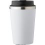 Rozsdamentes acélból és PP-ből készült utazópohár (350 ml). A PP fedél szilikon zárógyűrűvel rendelkezik, tetején lehajtható záróelemmel. Egyedileg csomagolva barna kartondobozban érkezik. Emblémázás: Tamponnyomás